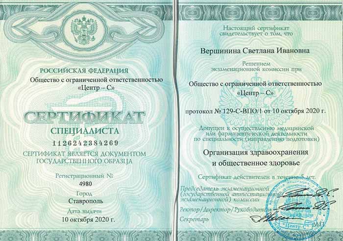 В 2020 году прошла повышение квалификации «Организация здравоохранения и общественное здоровье»