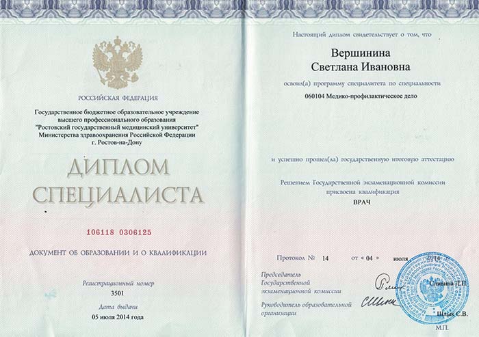 На протяжении многих лет Вершинина Светлана Ивановна работала преподавателем в РостГМУ.