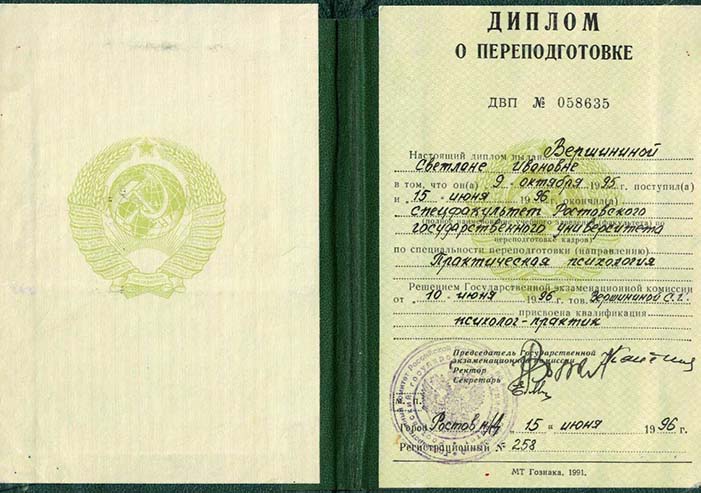 В 1996 повышение квалификации «Практическая психология», Ростовский государственный медицинский университет